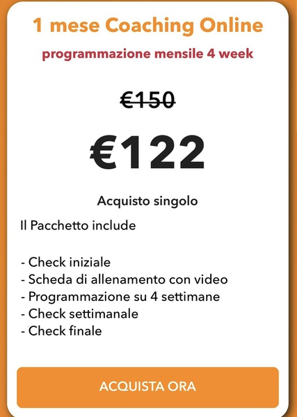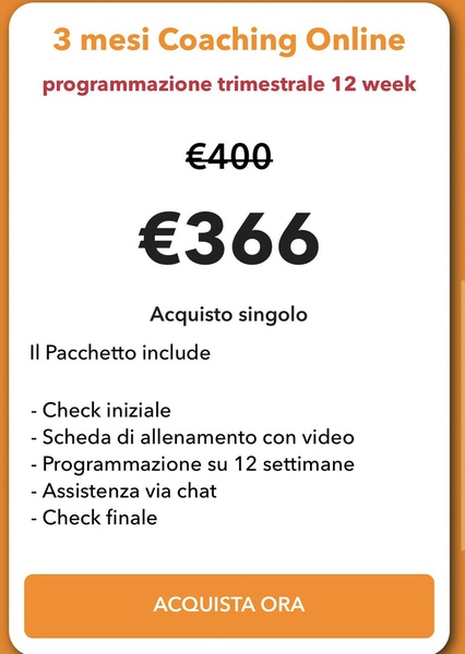 Il Piano personalizzato puó essere MENSILE (se sei alla prima esperienza o vuoi provare il mio metodo) o TRIMESTRALE (se sei gia esperto o convinto a fare sul serio).