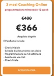 Entrambe le soluzioni prevedono un check iniziale, ma mentre con il mensile si ha un check settimanale di "feedback", con il piano di 12 settimane c'è l'assistenza via chat (lun-sab 08:00-20:00).